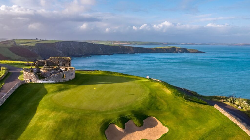 Old Head is pure bucket list: a cliffside links course set on a headland with crashing waves on nearly every hole. June brings long daylight hours and prime summer energy—perfect for a full Ireland golf road trip.