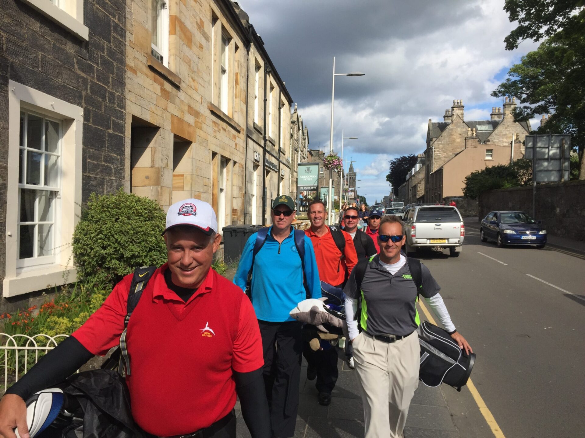 The ultimate mission is to create repeat moments like the one in our signature headline image captured by our founder where six of his friends are marching to the first tee of the Old Course in St. Andrews knowing that they have a confirmed tee time.